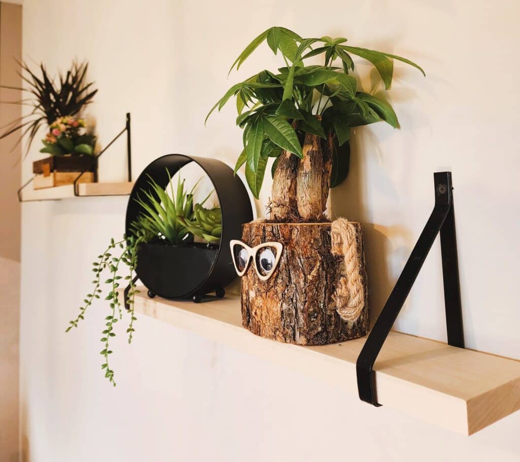 L’utilisation de matériaux naturels, tels que le bois du mobilier, apporte une touche de chaleur à l’ensemble de la pièce, tandis que les éléments de verdure et la décoration murale géométrique ajoutent une dynamique visuelle, favorisant la créativité.