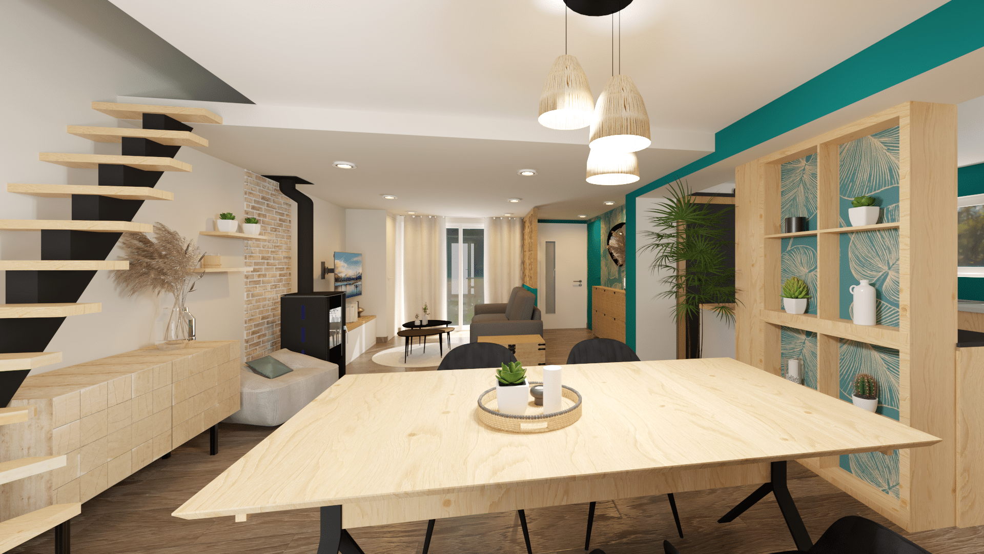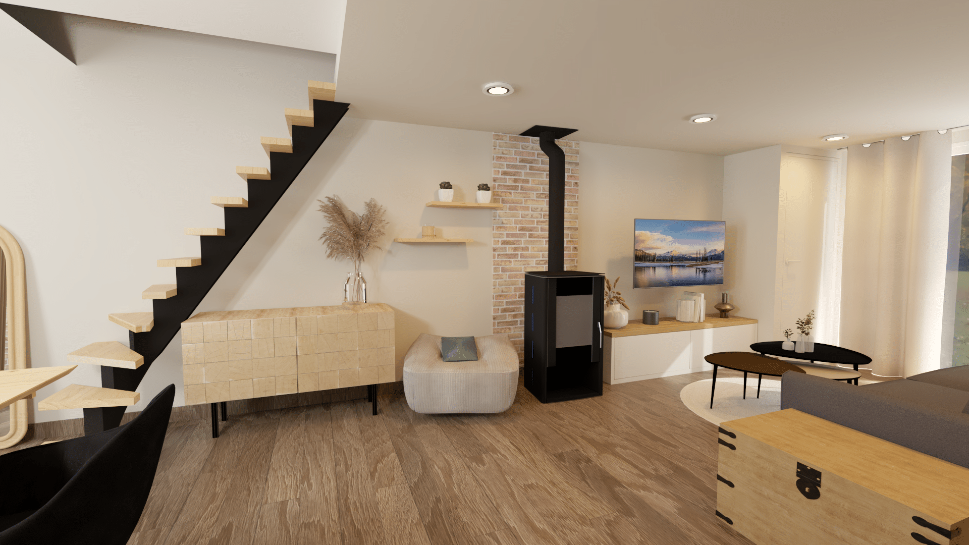 Cette maison a été transformée pour offrir un espace de vie chaleureux et optimisé. L’objectif principal était de concevoir un intérieur qui allie fonctionnalité, modernité et ambiance conviviale.