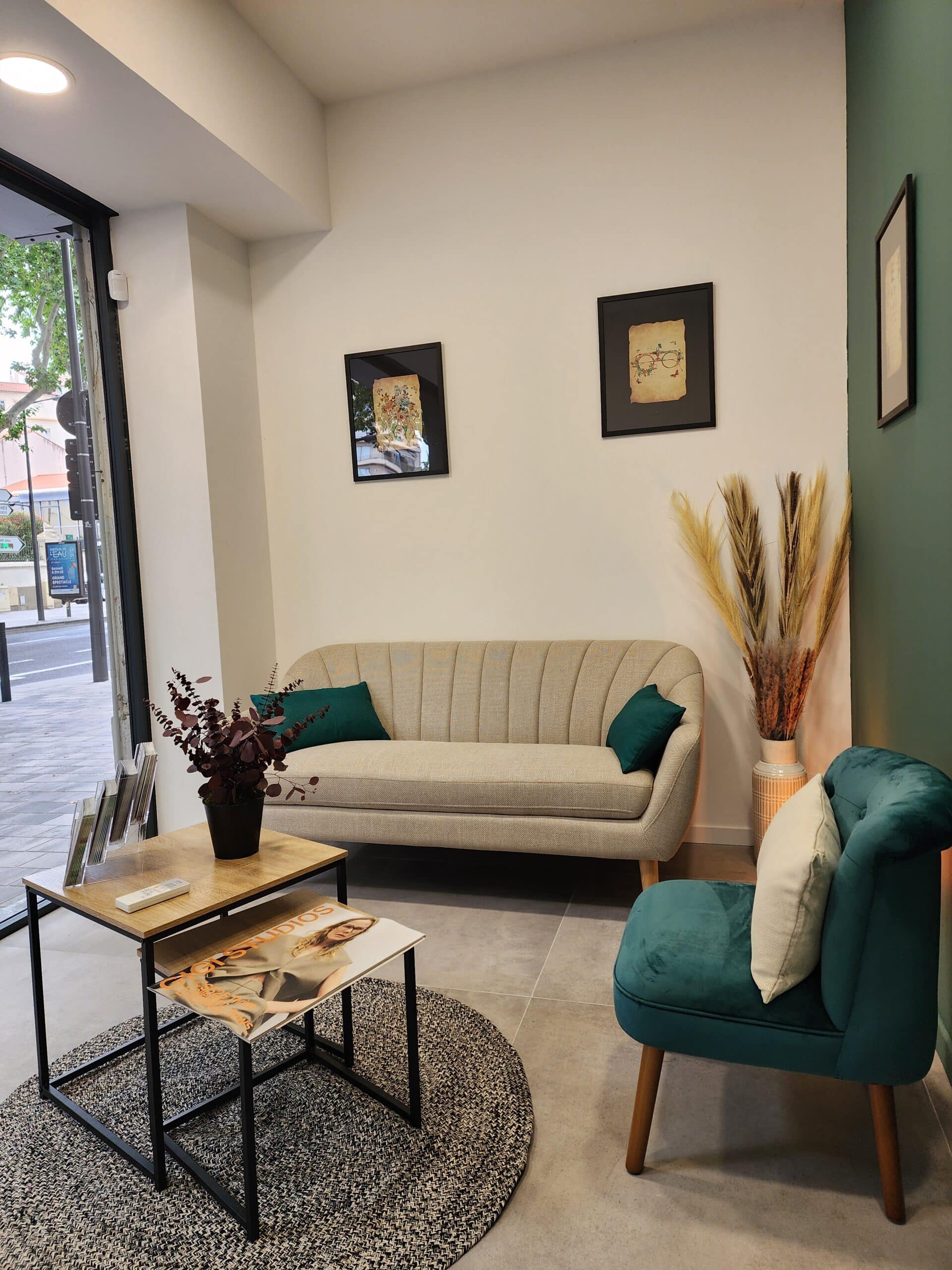 En tant que décoratrice et architecte d’intérieur spécialisée dans l’aménagement de commerces, ma mission a été de créer une ambiance conviviale et professionnelle, sans entreprendre de gros travaux.